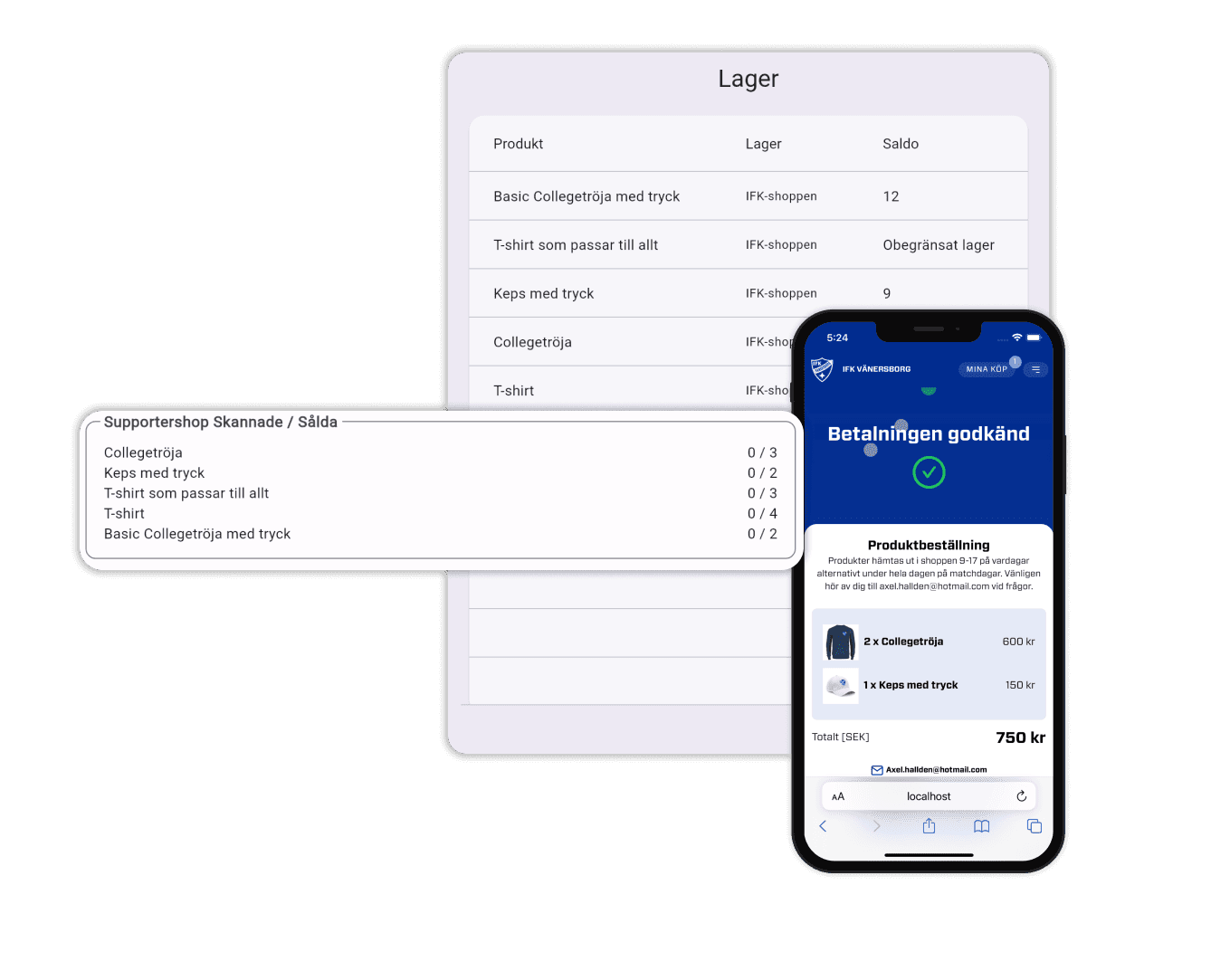 Det blir enklare för era supportrar att hitta till shoppen då ni har den på samma plattform som biljetterna. Samtidigt blir det enklare för er att hålla koll försäljningen av era olika produkter